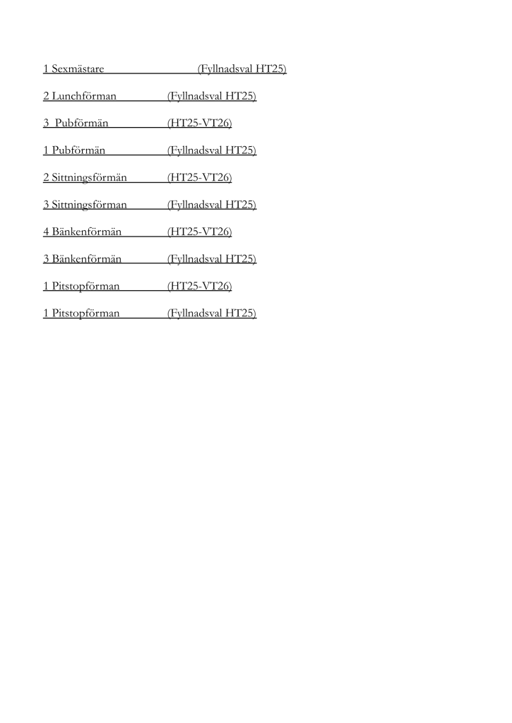 The following counter candidates have been submitted for the nation meeting on the 30th of October. For vacant foreman and master posts it is also possible to candidate at the meeting.